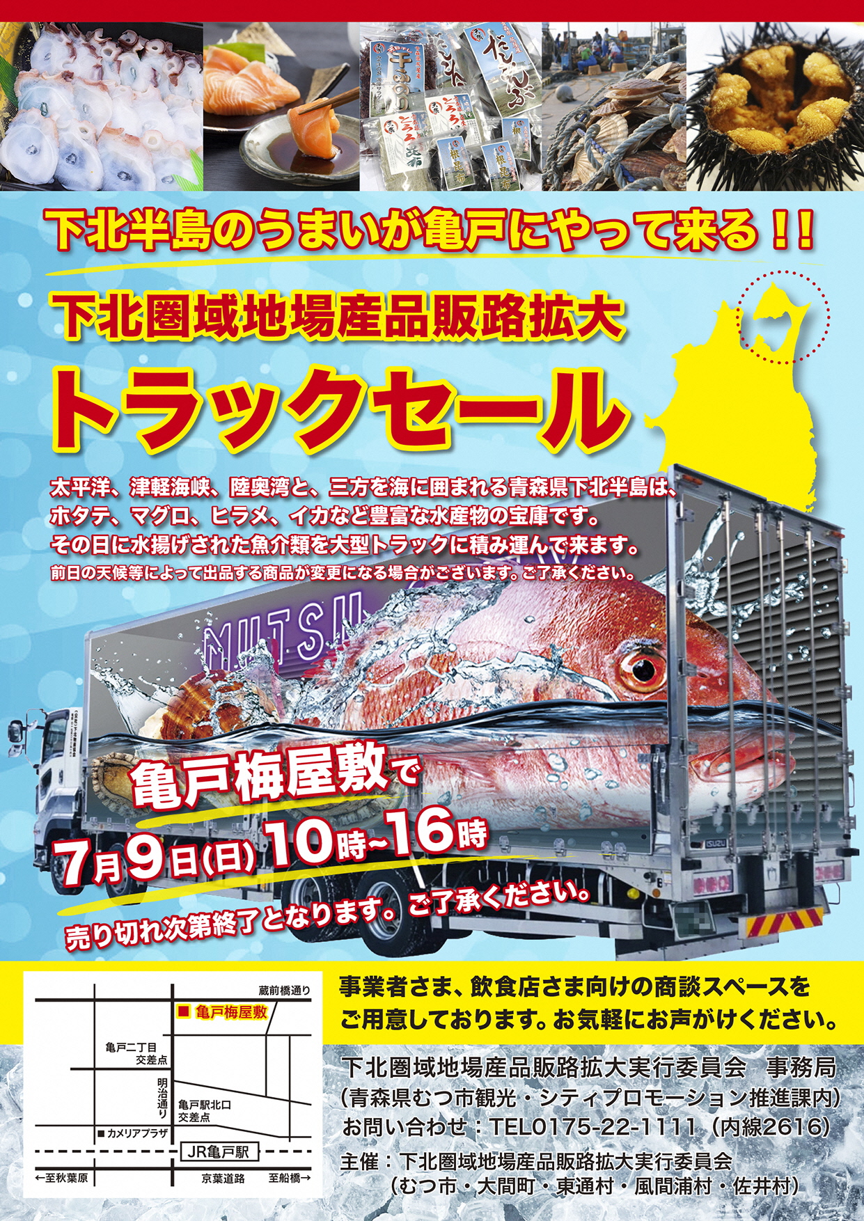 風間浦村からは家政商店が参加し、ヒラメやミズタコの刺身を販売します。