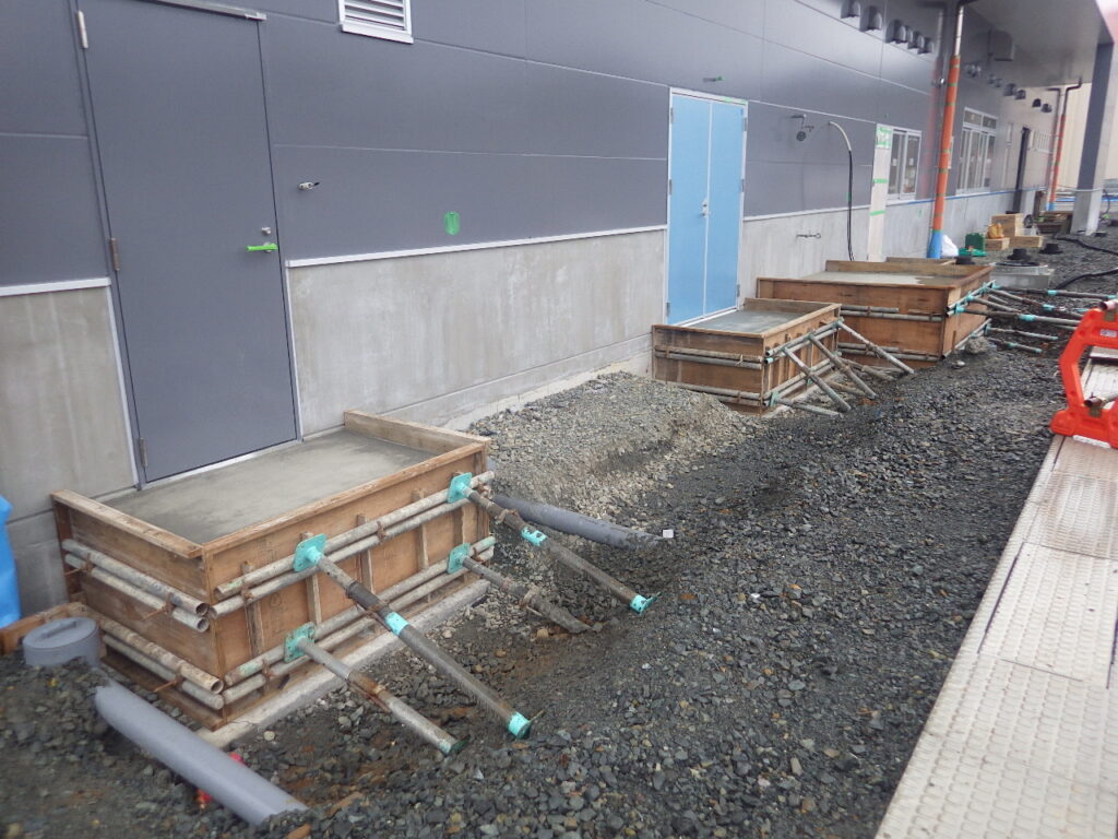 建物廻りのポーチ・車庫前の土間コンクリート打設が完了しました。