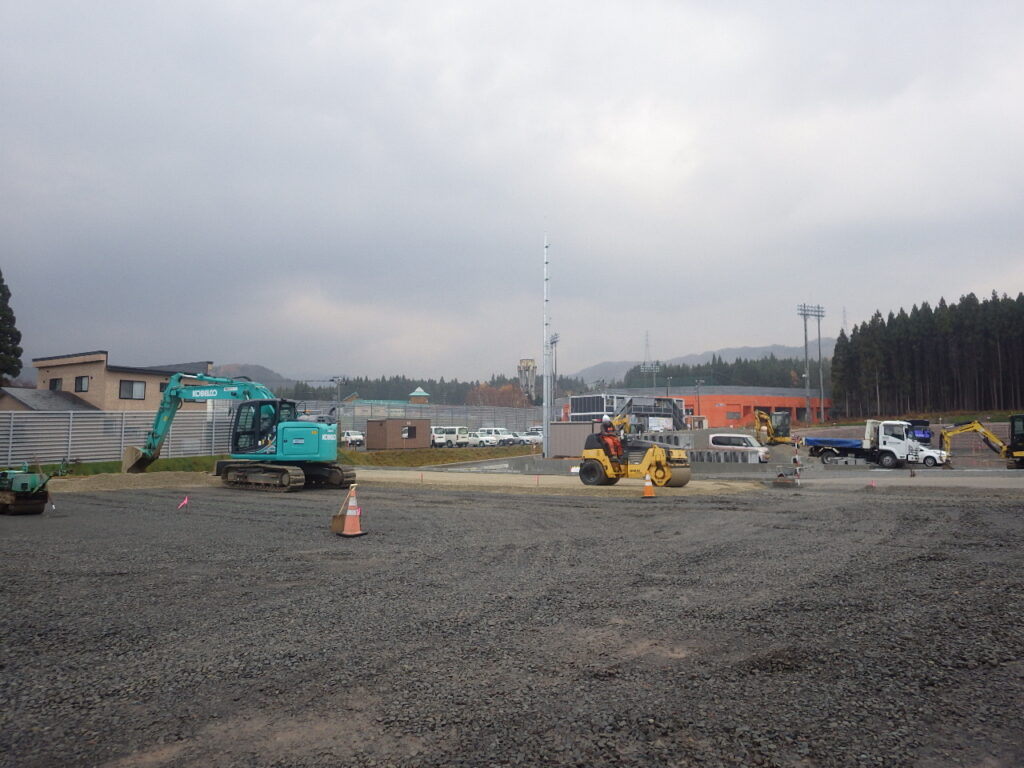 外構はアスファルト舗装に向け、路盤整正を行っています。