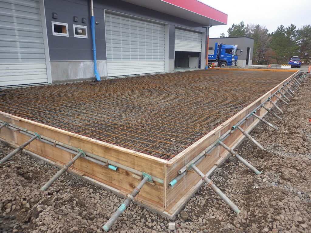 車庫前の土間配筋が完了し、これからコンクリート打設を行います。