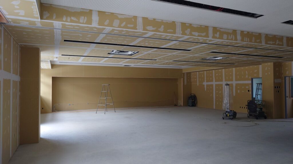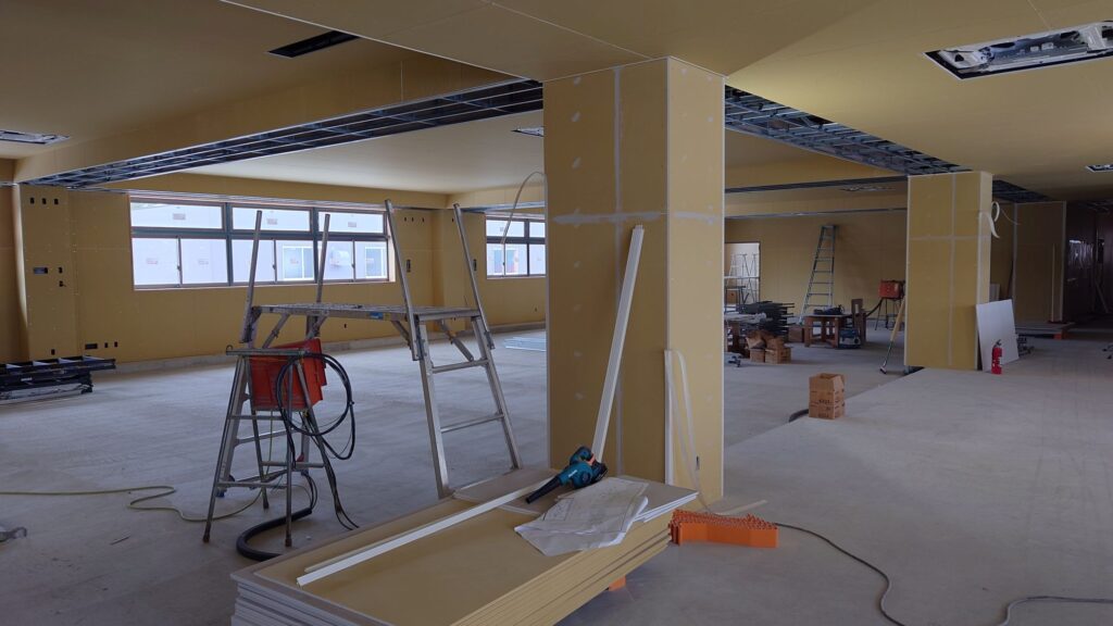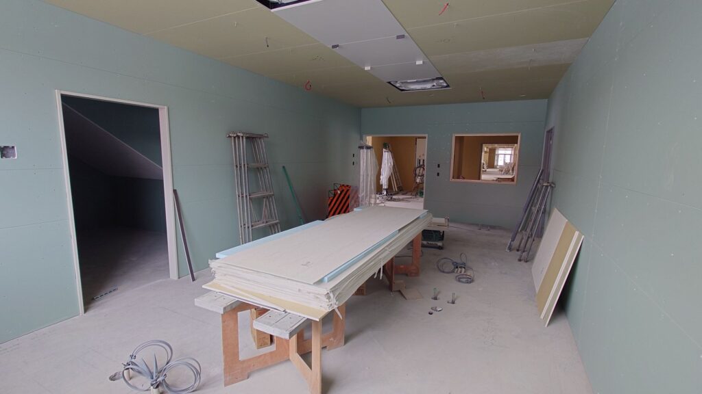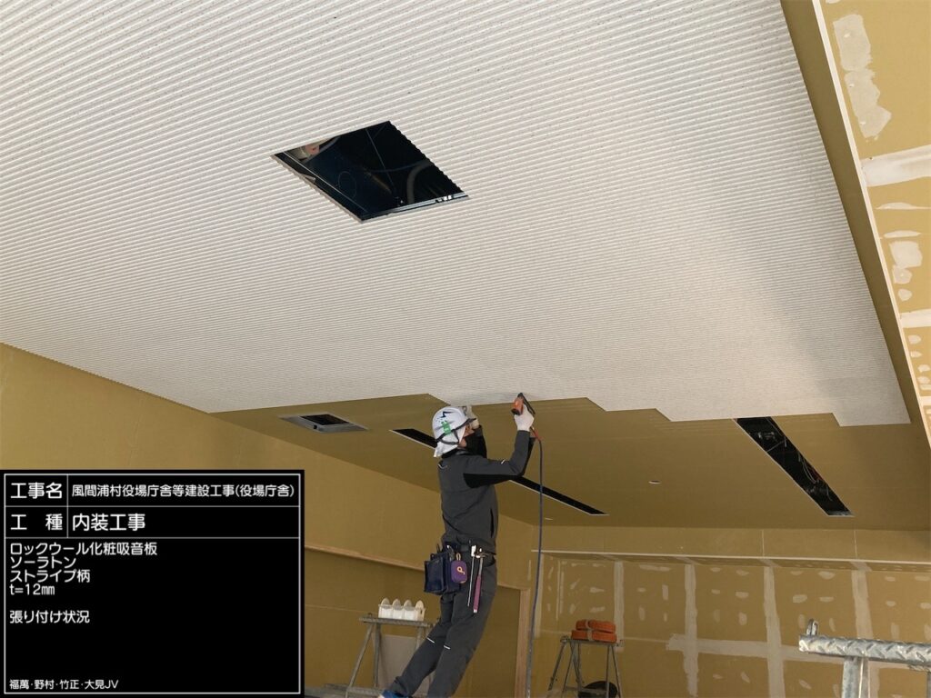 天井吸音板張:天井の仕上となる吸音板を張付けています。