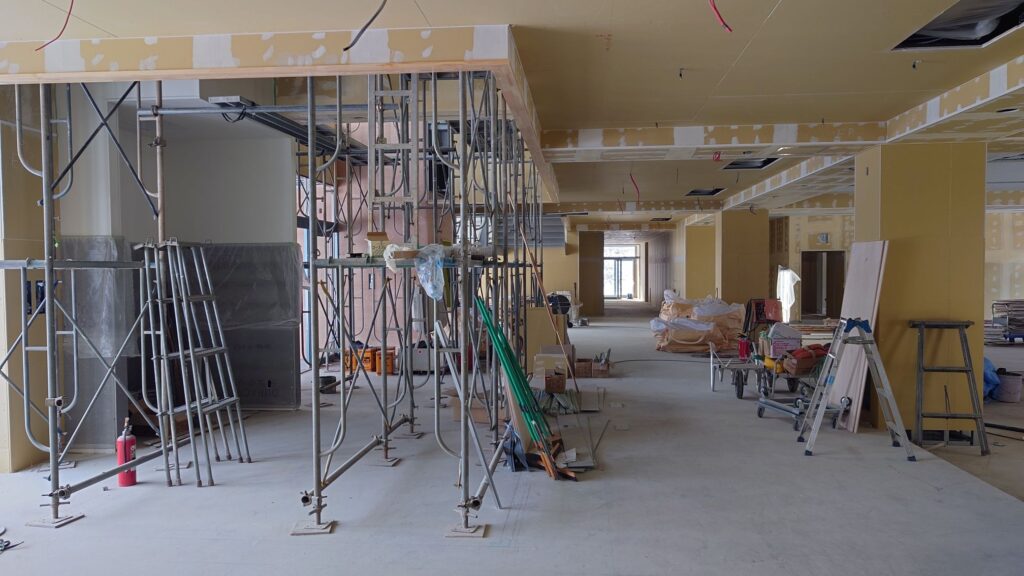 令和7年12月末現在の進捗率は約79.6%で、令和8年3月の完成を目指して工事は順調に進められております。