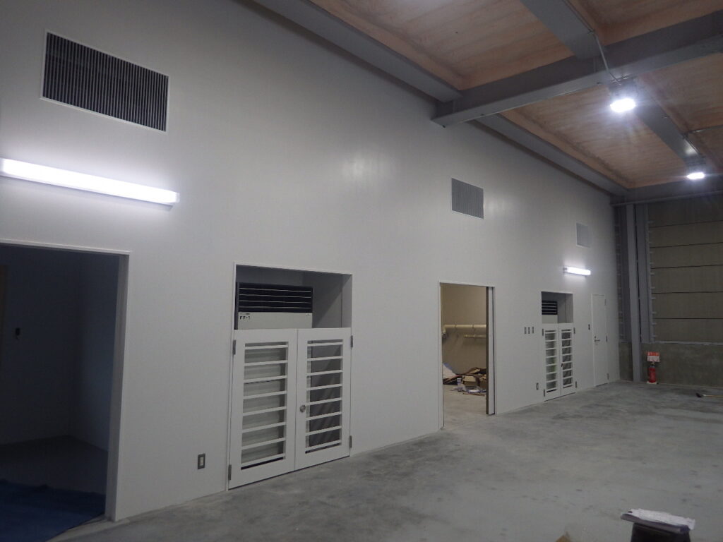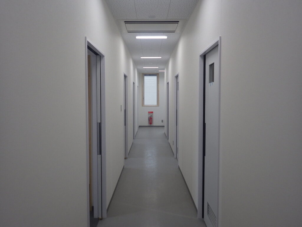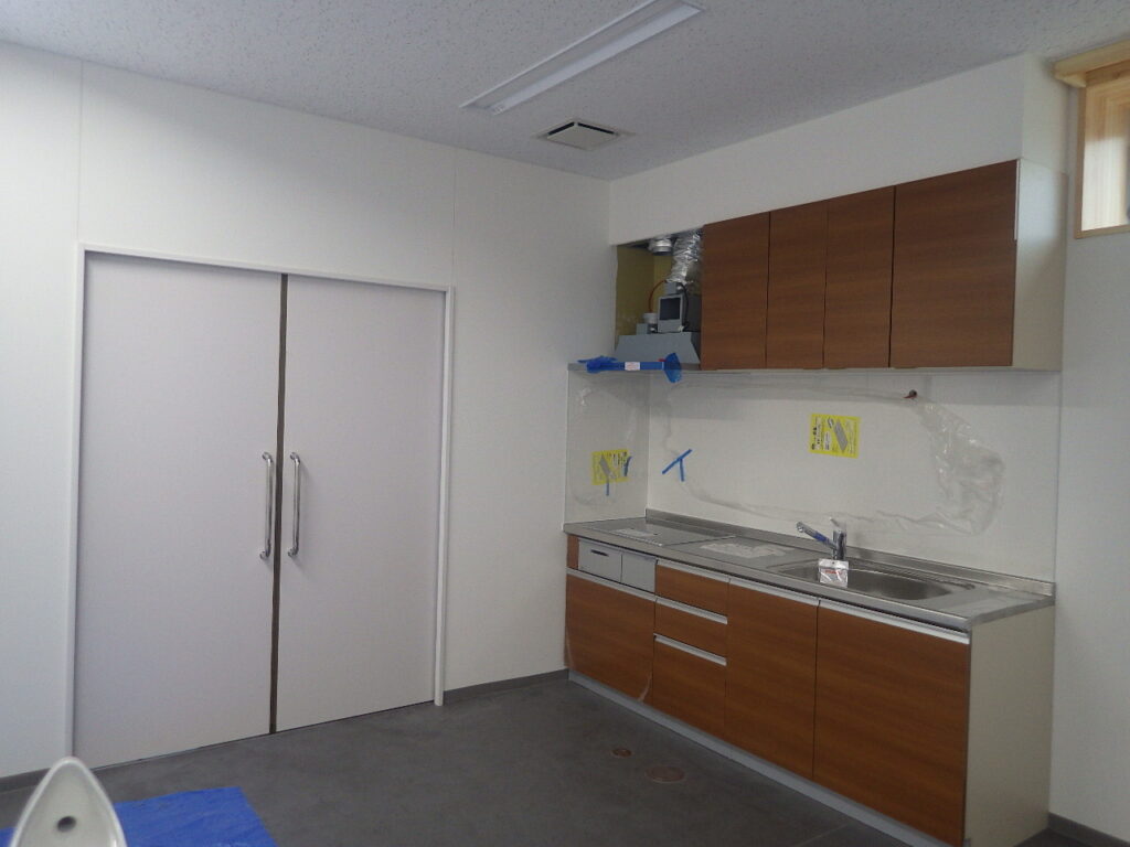内部では壁・床の仕上げ貼り作業が完了しました。