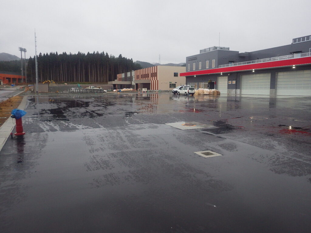 外部ではアスファルト舗装が完了しました。
