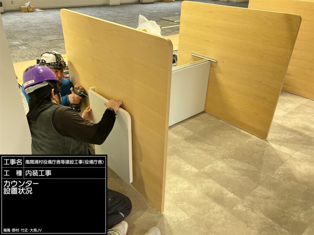 1・2階の執務室に受付カウンターを組立・設置します。