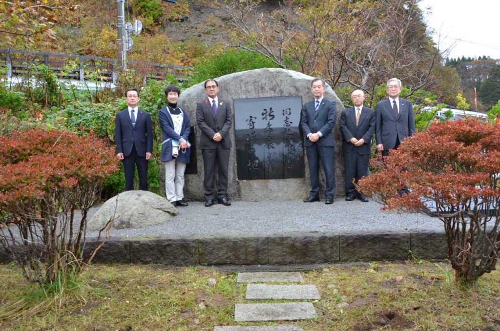 この史実を同志社校友会青森県支部の方々が取り上げ、この地にこの史実を後世まで伝えられる記念碑を建てられないだろうかという希望と、村民の様々な交流基盤になればと、平成4年、海峡いさりび公園に「新島襄寄港の地碑」が建立され、これを期に、風間浦中学校2年生による「同志社中学体験入学」や「同志社大学留学生との交流」など、様々な熱い交流が交わされています。