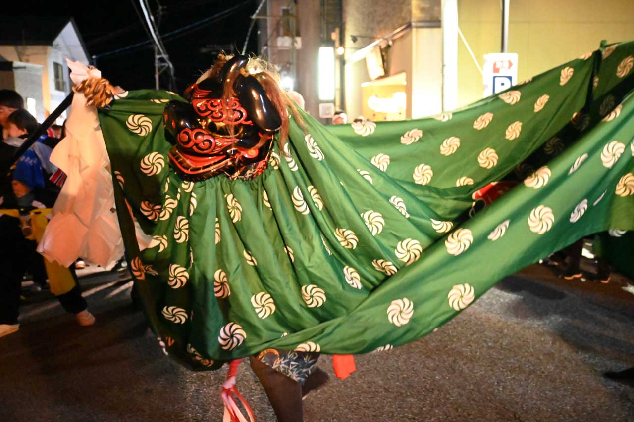 稲荷神社は下風呂字湯ノ上に鎮座し、明暦3年(1657年)の勧請。稲荷神社祭典は村内唯一の秋祭りで、船山車に飾られた提灯が 秋の夜を彩ります。下風呂温泉街から神社までの坂道を、獅子を振りながら歩く”くるい獅子”は祭りのフィナーレを告げ、住民と観 光を魅了します。